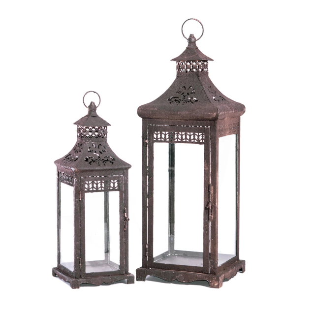 Conjunto De Lanternas Rústicas Metal Envelhecido Decorativa